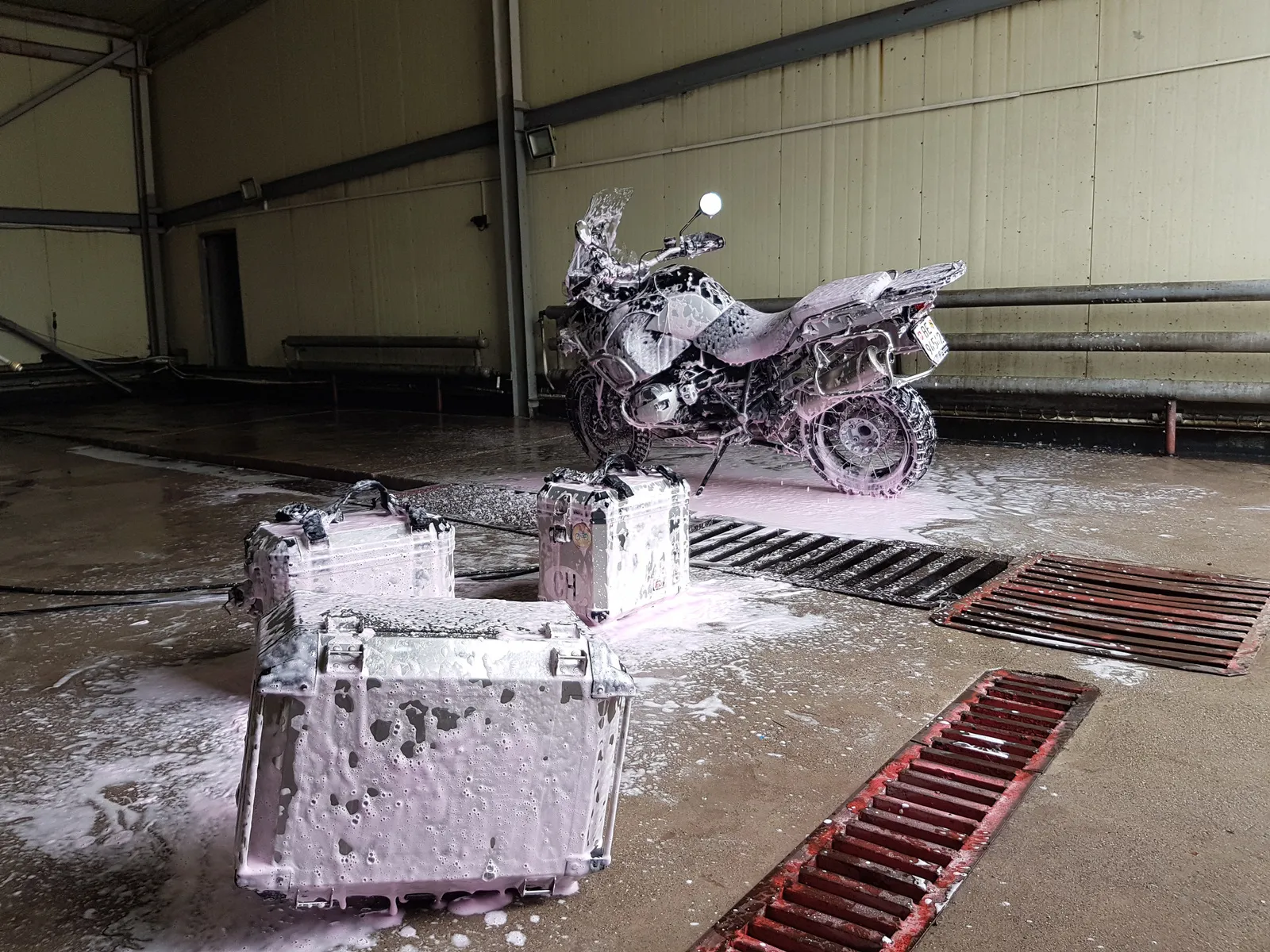 Seit dem letzten Motorrad Service in Almaty sind bereits wieder 10’000km vergangen, weshalb als erstes gleich die BMW Garage aufgesucht wird um einen Temin auszumachen. Wie üblich kommt das Motorrad frisch gewaschen und gläzend zurück. Da das Motorrad aber nach Kanada verfrachtet wird, muss vor dem Verpacken in eine Holzkiste nochmals sehr gründlich gewaschen werden. Auch meine Ausrüstung (Zelt, Gaskocher, Kleider) wasche ich, damit der kanadische Zoll keine Erde oder sonstiger Dreck finden kann. Ansonsten läuft man Gefahr, dass der Zoll den Import verweigert oder eine happige Gebühr für das Reinigen bezahlt werden muss.