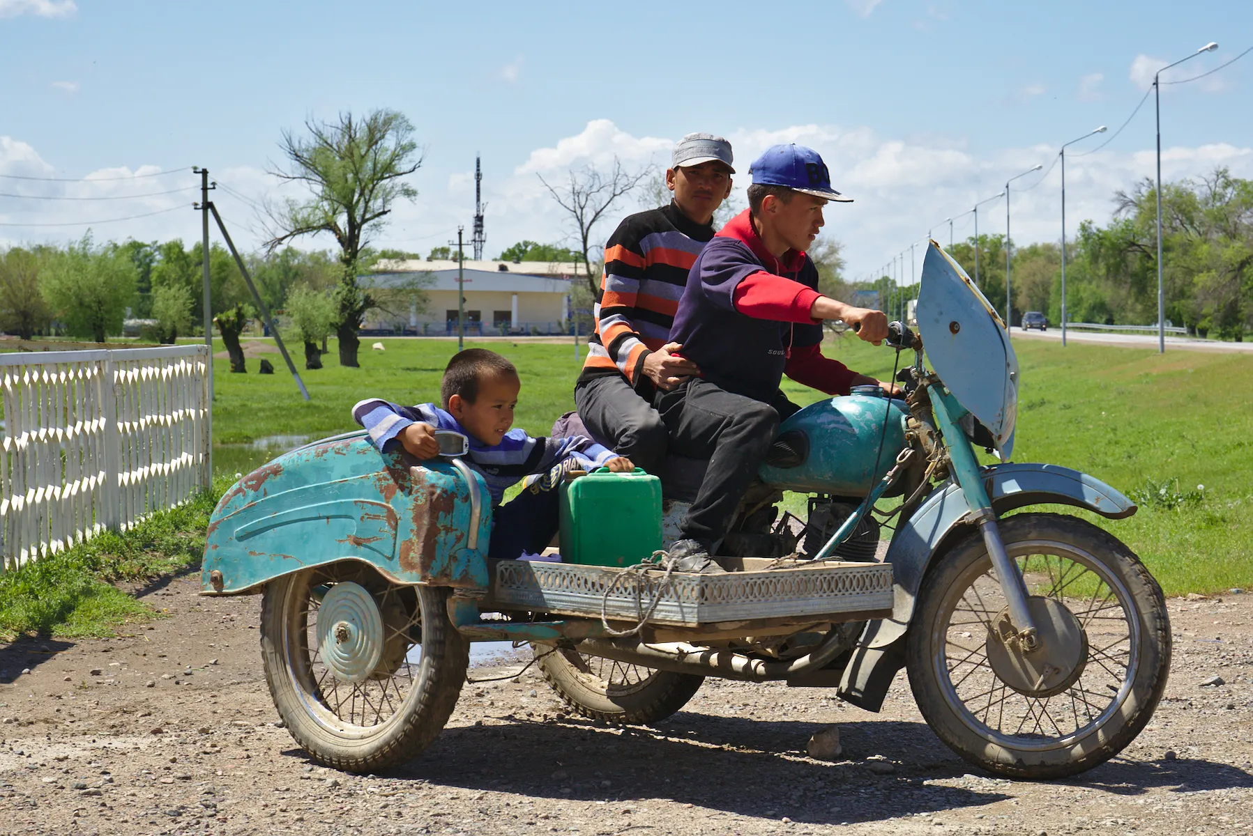 Zum zweiten Mal erwartet uns ein Grenzübergang nach Kasachstan. Leider haben wir dieses Mal den falschen erwischt (nur für Einheimische), was uns einen Umweg von 140 km beschert. Den 4 Russen, die ebenfalls mit dem Motorrad unterwegs sind, gehts nicht besser und so machen wir diese Grenzerfahrung gemeinsam. Alles Gepäck geröntgt, alle Formulare ausgefüllt, der letzte Schlagbaum hinter uns (übrigens: Schlagbaum verstehen hier alle - eines der wenigen deutschen Wörter, die von vielen Ländern in ihren Wortschatz aufgenommen wurden) und ab auf Hotelsuche. Um Mitternacht checken wir mit den 4 Russen (nicht Russinnen…) in einem Stundenhotel ein und ein paar Stunden später wieder aus.