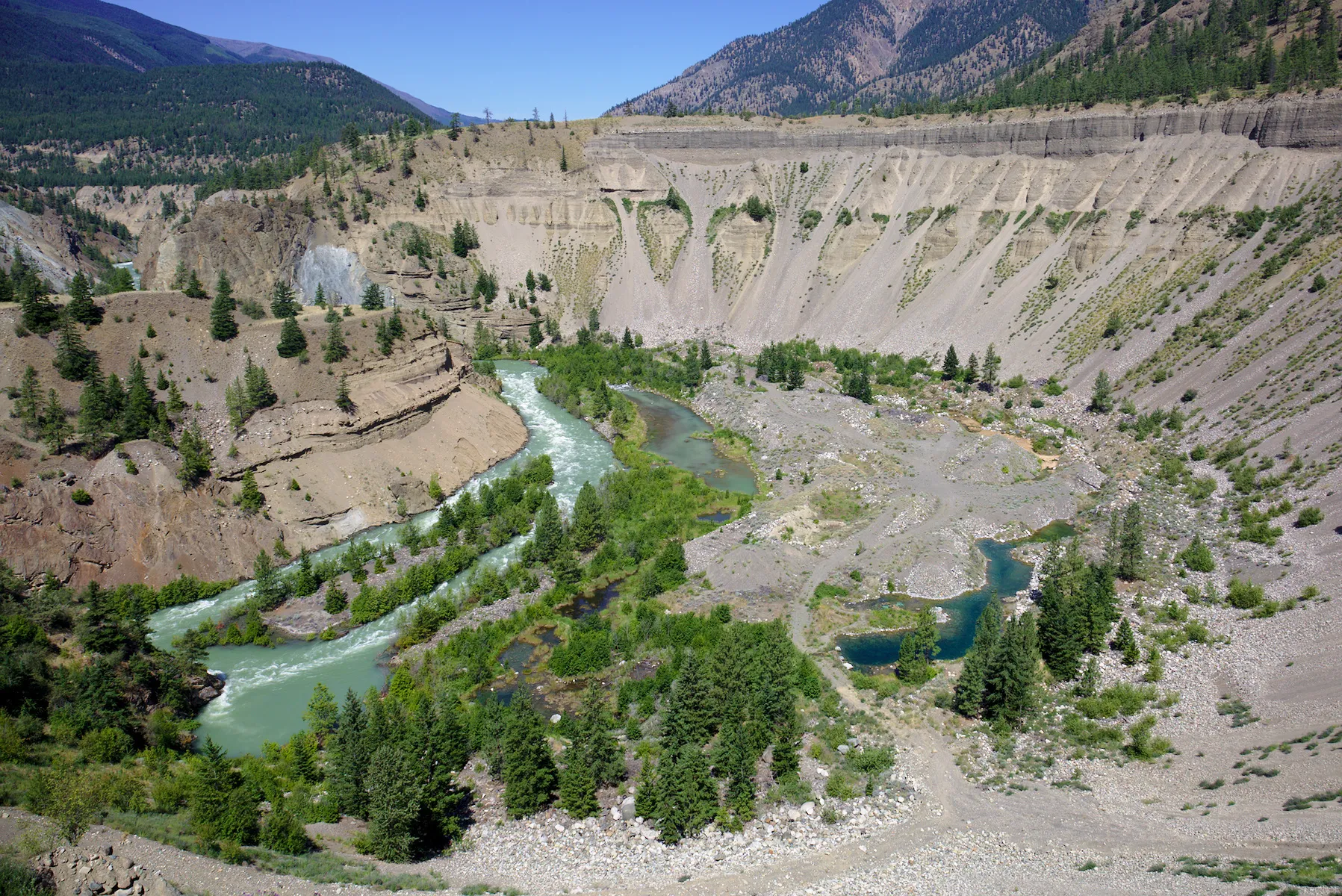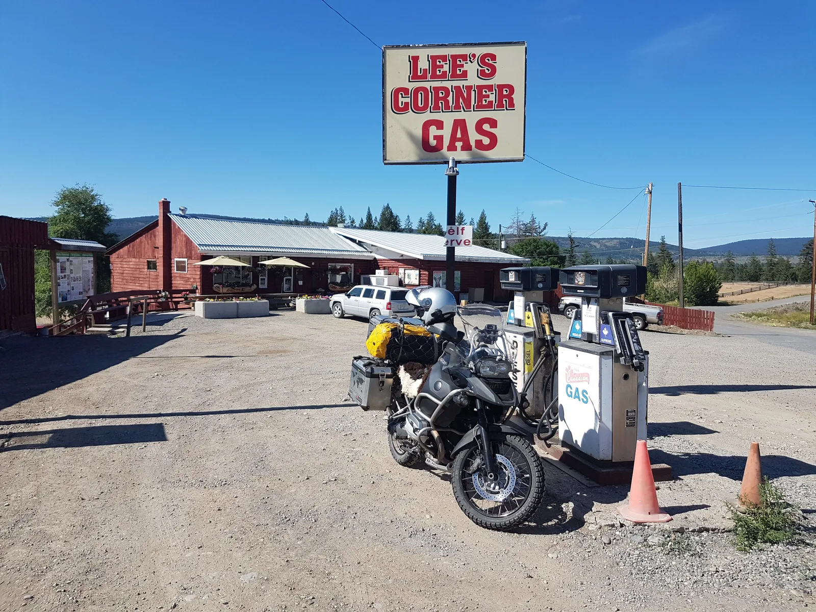 Im Süden von B.C. (British Columbia), ist das Wetter extrem heiss und trocken, sodass überall Waldbrände ausbrechen, teilweise Strassen gesperrt sind und zehntausende Menschen evakuiert werden. Alsbald ich wieder in die Nähe der Küste komme, wird das Wetter unberechenbar und vorallem für lange Zeit regnerisch. So entscheide ich mich zwei Mal in ein Hotel zu gehen, um die Sachen zu trocknen und mir eine bequeme Nacht zu gönnen. Das schlimmste ist, die nassen Motorradkleider vom Vortag, nach einer regnerischen Nacht im Zelt, wieder feucht anziehen zu müssen.