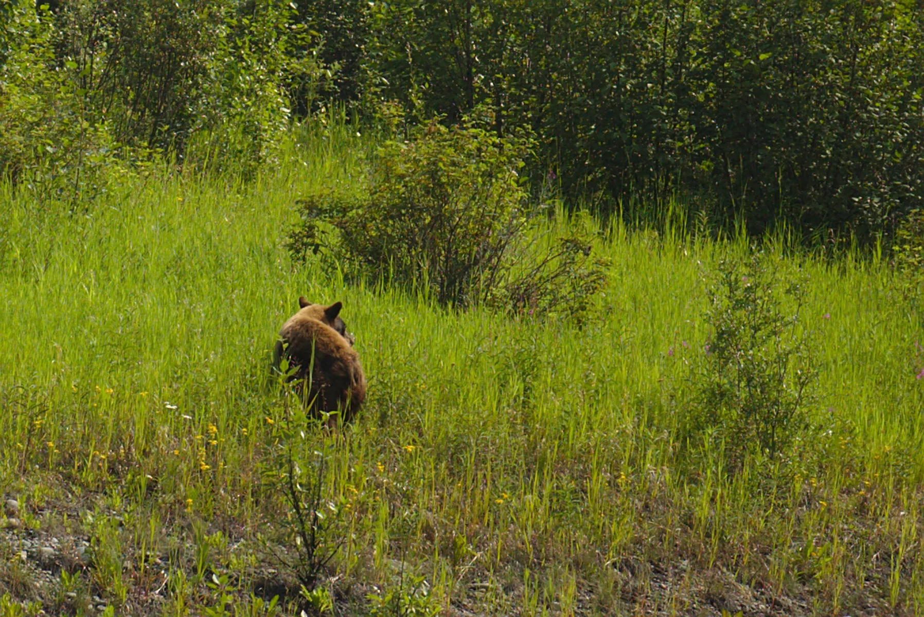 Unerwarteterweise werde ich zweimal in Alaska einreisen; einmal davon ganz im Süden, in Hyder, das nur via Kanada ans Strassennetz angebunden ist. So gibt es keinen US Zoll, und der Pass muss nur bei der Wiedereinreise nach Kanada gezeigt werden. Der Abstecher ist dank dem Salmon Gletscher, dem Gletschersee und den Minen sehr lohnenswert. Ende Juli kann in Hyder sogar den Bären beim Lachs-Fischen von einer Plattform aus zugesehen werden, was ich leider knapp verpasse. Trotzdem habe ich unterwegs bereits 5 Bären, 2 Elche, Füchse, Eichhörnchen und viele andere Tiere gesehen :-)