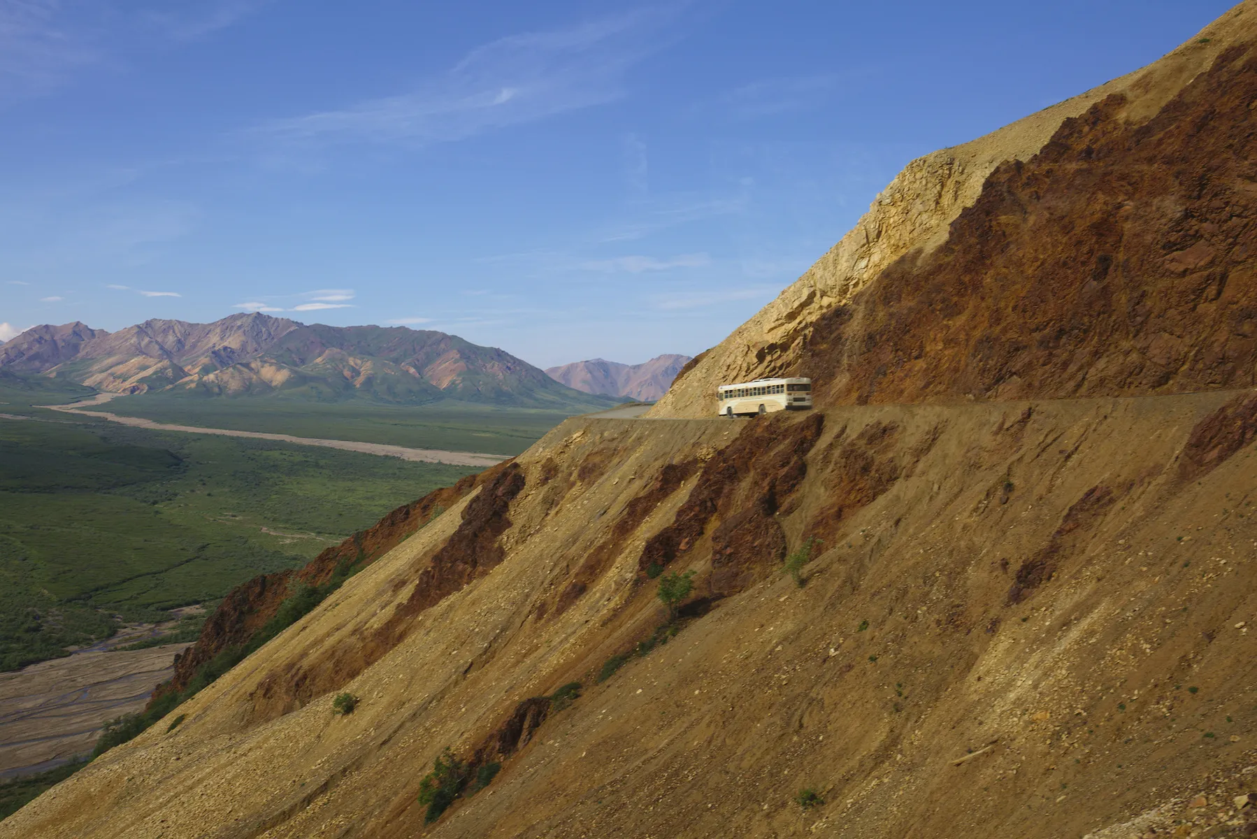In den Park hinein geht es nur mit einem Bus - oder zu Fuss. Nach einer 4 stündigen Busfahrt mit einem sehr unterhaltsamen Busfahrer, komme ich im Eielson Visitor Center an. Ich entscheide mich für eine 2 stündige Wanderung, für welche ich knappe 50 Minuten benötige. Auf dem Bus zurück aus dem Park, treffe ich per Zufall wieder auf Stina und Kyle. So fahren wir gemeinsam zu Paul (Tent Space Map ;-)), wo wir auf ein weiteres Weltenbummler Paar stossen. Den Abend verbringen wir frischem Lachs (danke Paul) und tollen Motorradabenteur-Geschichten.