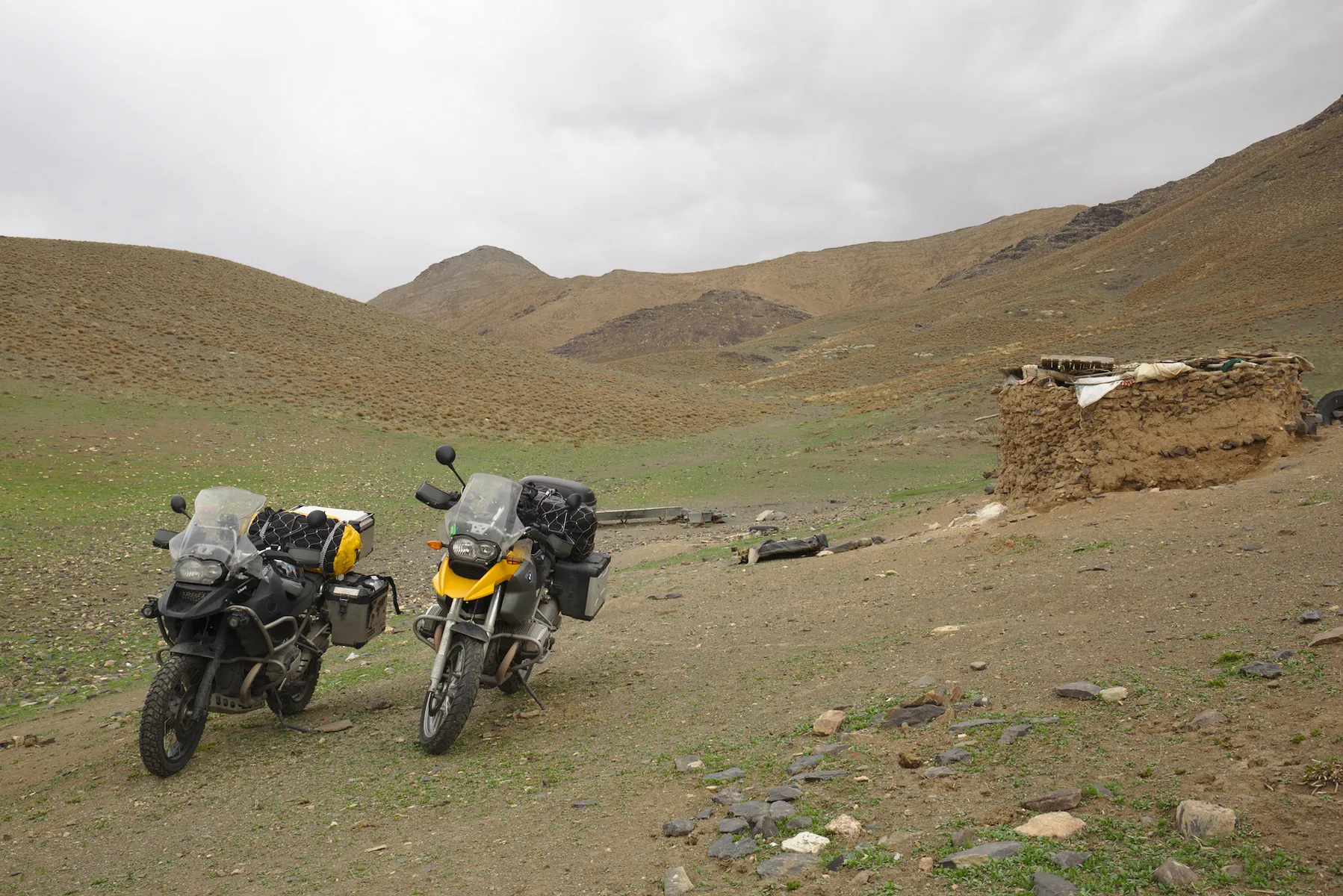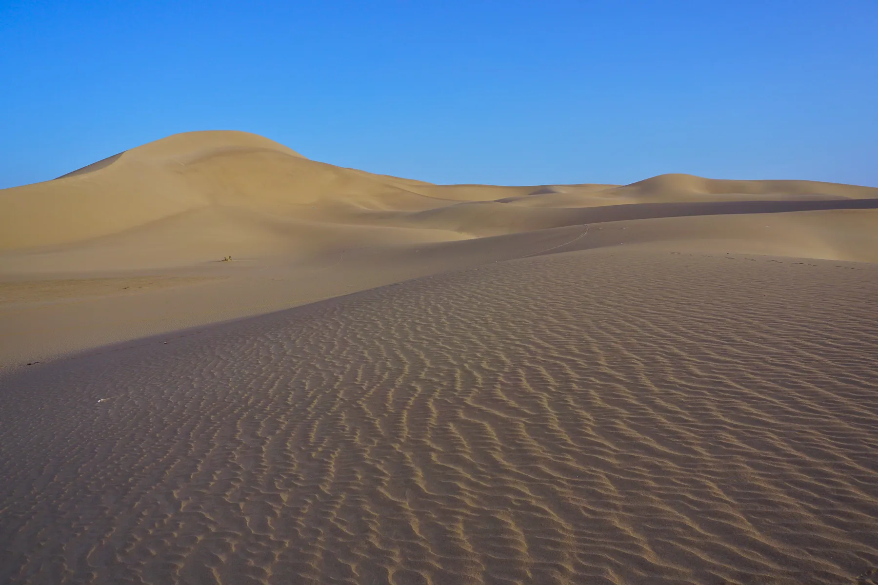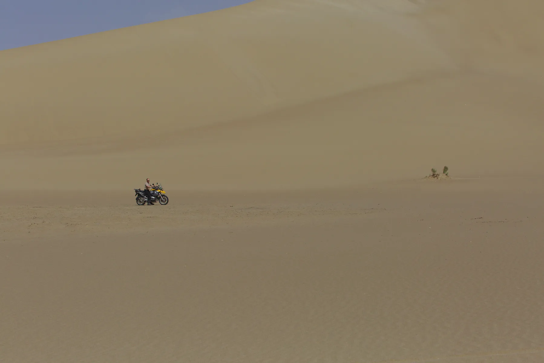 Noch ein paar letzte Fotos vor der tollen Dünen-Kulisse und weiter gehts - allerdings nicht weit. Ein herbes Schlagloch macht Günters Vorderreifen platt und führt zu einem Riss in der Gussfelge, der in einer lokalen Werkstatt provisorisch geschweisst werden muss. Damit lässt es sich bis zur nächsten BMW-Garage, die zwar nicht gerade um die Ecke liegt (über 1’500 km), vorsichtig weiterfahren.