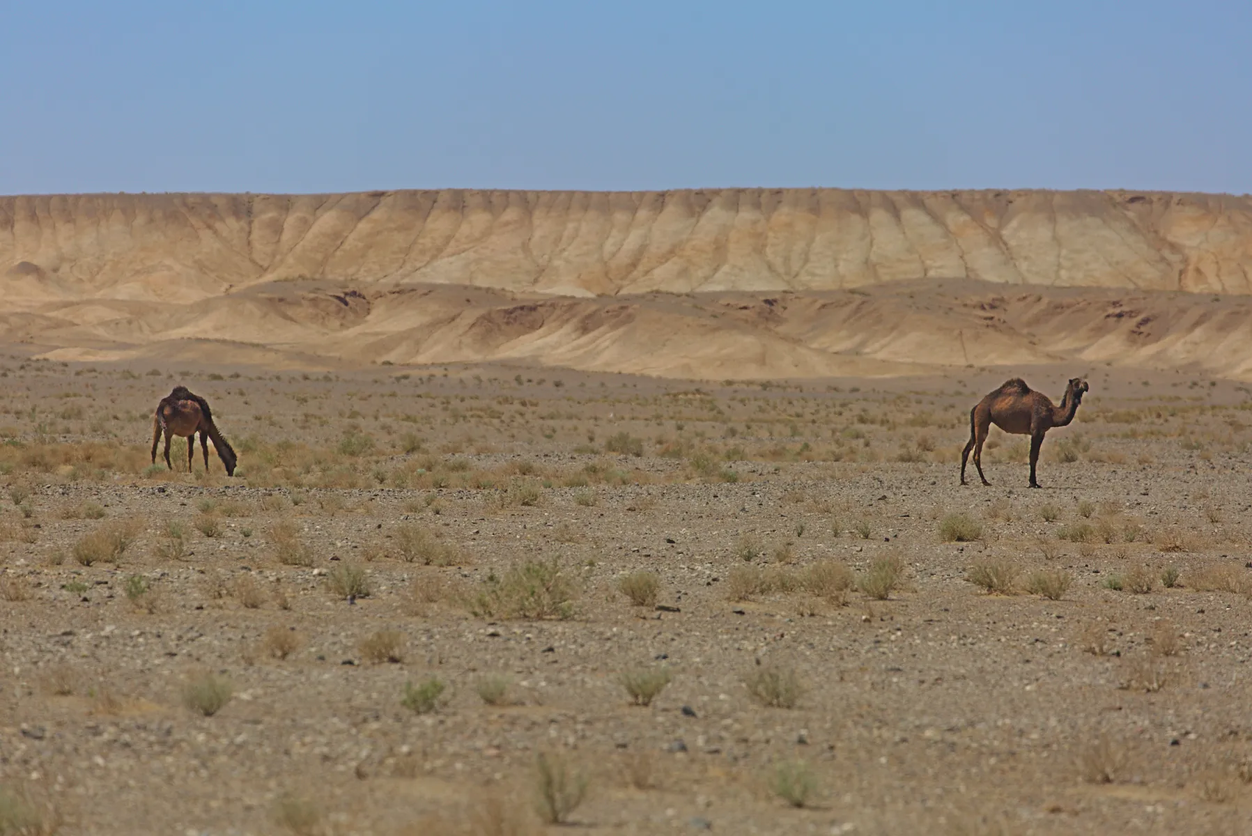 Zum perfekten Wüstenerlebnis fehlten uns nur noch die Kamele - und sie haben uns nicht enttäuscht. Am Tag darauf begegnen wir einem Rudel frei lebender Kamele, das geruhsam durch die Steinwüste zieht. Und so ziehen auch wir geruhsam weiter…
